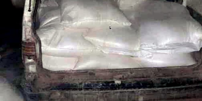ضبطت عناصر مديرية التجارة الداخلية وحماية المستهلك بريف دمشق كمية 1700 كيلوغرام من الدقيق التمويني بمستودع في بلدة حزة معدة للاتجار غير المشروع.