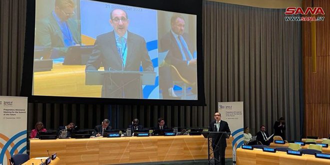 وقال صباغ في كلمة له على هامش أعمال الجمعية العامة للأمم المتحدة خلال الاجتماع الوزاري التحضيري لقمة المستقبل المزمع عقدها في العام القادم 2024: “يجب على عهد المستقبل أن يعزز تنفيذ أجندة 2030 لا أن يستبدلها، وانطلاقا من ذلك، تؤكد سورية بأنها لا تقبل بأقل مما تم تحقيقه في تلك الأجندة بما في ذلك الاعتراف بالأثر المدمر للإجراءات القسرية الأحادية على العملية التنموية في البلدان المستهدفة”.