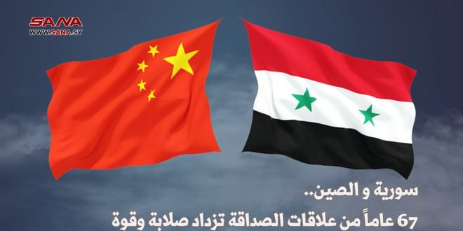 وشهد التعاون السوري الصيني منذ إقامة العلاقات الدبلوماسية قبل 67 عاماً نمواً متواصلاً في مختلف الميادين، حيث دعمت الصين سورية خلال الحرب الإرهابية المفروضة عليها، وكان لها موقف مبدئي تجاه الحل السياسي ورفض التدخل الأجنبي في شؤونها الداخلية، واستخدمت حق النقض “فيتو” ثماني مرات في مجلس الأمن الدولي منذ بداية الأزمة عام 2011 لإفشال مشاريع قرارات غربية تنتهك سيادة سورية، مؤكدة أن الشعب السوري هو من يقرر مستقبل بلده فضلاً عن دعمها المستمر لحق سورية في استعادة الجولان المحتل.