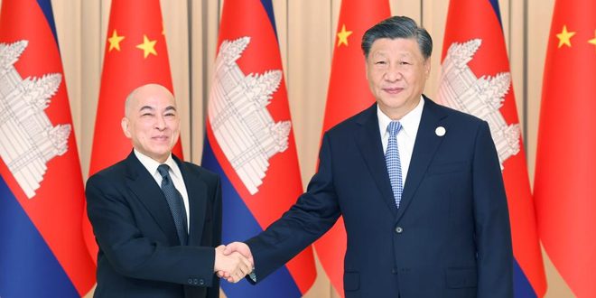 ونقلت وكالة شينخوا عن الرئيس شي قوله خلال لقائه ملك كمبوديا نوردوم سيهاموني في مدينة خانجو الصينية قبل حفل افتتاح دورة الألعاب الآسيوية الـ 19: “إن الصين تعتز بصداقتها مع كمبوديا، وتولي أهمية كبيرة لتنمية العلاقات معها”، مشيراً إلى أن هذا العام يصادف الذكرى الـ 65 لإقامة العلاقات الدبلوماسية بين الصين وكمبوديا وعام الصداقة بين البلدين.