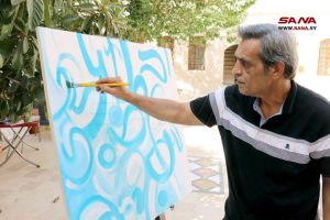ومن المدرسة الحروفية لفت الفنان خلدون أحمد إلى أنّ الملتقى فرصة لإبراز المدرسة الحروفية التي تعكس تكوين وسحر الحرف العربي الذي امتازت سورية بالحفاظ عليه بمختلف الفنون، وأهمها الفن التشكيلي الذي تعتبر لوحتي مزيجاً بينه وبين المدرسة الحروفية.