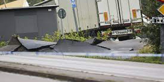 أصيب ثلاثة أشخاص بجروح متفاوتة إثر انهيار مساحة ضخمة من طريق سريع في جنوب غرب السويد.