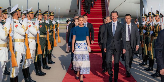 وصل السيد الرئيس بشار الأسد والسيدة الأولى أسماء الأسد إلى مطار بكين اليوم.