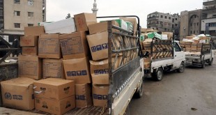 بدعم من الحكومة السورية وبإشراف اللجنة العليا للإغاثة واصلت الهيئة العامة للاجئين الفلسطينيين العرب ووكالة الأمم المتحدة لإغاثة وتشغيل اللاجئين الفلسطينيين “الأونروا” توزيع المساعدات الغذائية والطبية على أهالي مخيم اليرموك الذين غادروا المخيم هربا من جرائم التنظيمات الإرهابية المسلحة وفي مقدمتها تنظيم “داعش” الإرهابي.