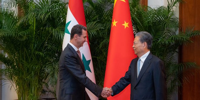 الرئيس الأسد يلتقي رئيس اللجنة الدائمة للمجلس الوطني لنواب الشعب الصيني تشاو لي جي في بكين