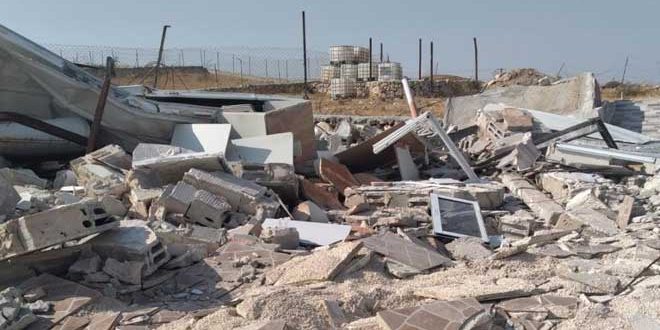 وذكرت وكالة وفا أن قوات الاحتلال اقتحمت القرية بعدد من الجرافات، وهدمت منزلاً ومنشأة وقامت بتجريف مساحات من الأراضي.