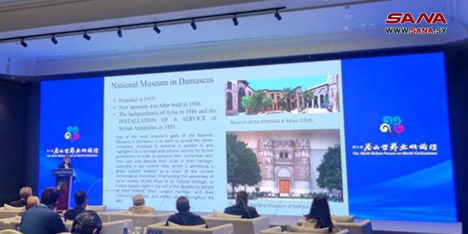 تشارك سورية بالمنتدى الفرعي للمتاحف ضمن منتدى نيشان التاسع للحضارات العالمية الذي يحمل عنوان “المتاحف.. جسر بين الماضي والحاضر والمستقبل”، وذلك في مدينة كوفو- مقاطعة شاندونغ بالصين.