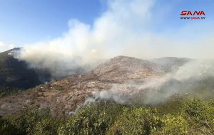تواصل فرق الإطفاء بمؤازرة المروحيات عمليات إخماد حريق اندلع في قرية كاف الحمام ووادي صافي وسفح جبل جويدي في منطقة الشيخ بدر بطرطوس.