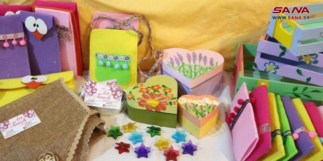 مشغولات من الخشب والكروشيه والشموع وإكسسوارات متنوعة قدمها 15 مشاركاً ومشاركة، ضمن معرض الأشغال اليدوية المقام حالياً في صالة الفنون التشكيلية بحلب.