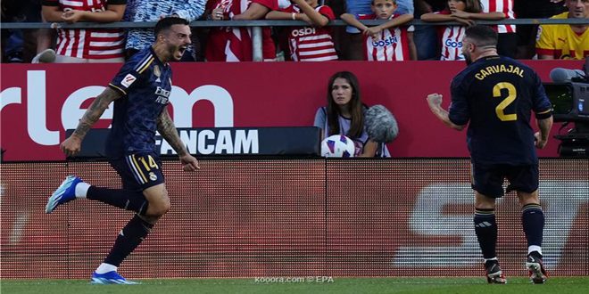 فاز ريال مدريد بثلاثة أهداف نظيفة على جيرونا اليوم ضمن منافسات الجولة الثامنة من الدوري الاسباني لكرة القدم “الليغا”.