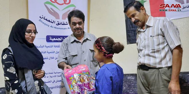 وزعت جمعية شقائق النعمان للتعليم والتمكين في الحسكة اليوم حقائب مدرسية للتلاميذ الأيتام في مدارس المحافظة، بإشراف مديرية الشؤون الاجتماعية والعمل.