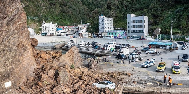 ونقلت وكالة يونهاب الكورية الجنوبية عن السلطات قولها: إن الانهيار الصخري وقع في منطقة جذب سياحي شهيرة معروفة بصخورها على شكل سلحفاة في الجزيرة، ما تسبب بإصابة أربعة أشخاص بينهم امرأة.