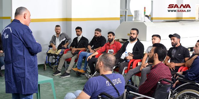 نظم مشروع جريح الوطن دورة تأهيل وتدريب بمجال الصناعة والتجميع الإلكتروني في مدينة حسياء الصناعية بريف حمص لأربعة عشر جريحا من شريحة العجز الكلي.