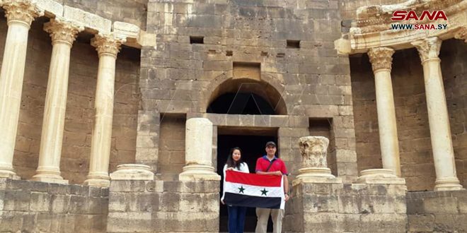 زارت مجموعة سياحية من الولايات المتحدة الأمريكية مدينة بصرى الشام الأثرية بريف درعا اليوم، للاطلاع على آثارها ومعالمها العمرانية والتاريخية.