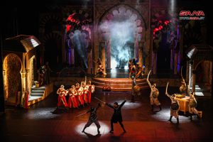 سعى المخرج أحمد زهير في العرض المسرحي ميوزيكل “تاج العروس” الذي أعلن انطلاقته من على خشبة مسرح دار الأسد للثقافة والفنون إلى أن ينقل الجمهور السوري عبر آلة الزمن إلى عام 1485 الذي يحاكي حقبة أندلسية مبهرة لمدينة إشبيلية ليجسد من خلالها مشاعر متناقضة على خشبة مسرح الأوبرا.