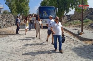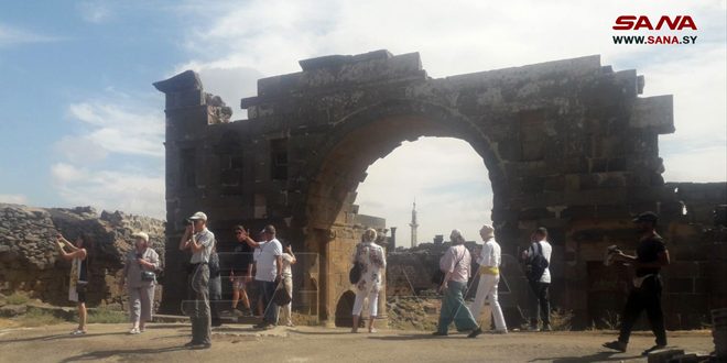 زارت اليوم مجموعة سياحية من روسيا الاتحادية مدينة بصرى الشام الأثرية في درعا، بهدف الاطلاع على معالمها الأثرية والحضارية.