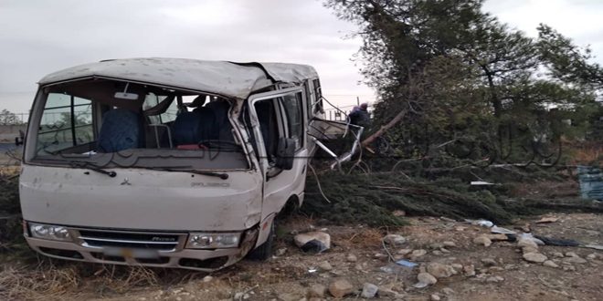 أصيب 15 شخصاً بجروح اليوم، جراء تدهور حافلة لنقل الركاب على طريق عام حمص دمشق.