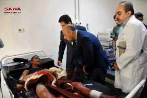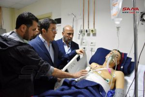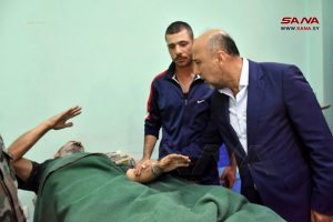 اطمأن وزير الصحة الدكتور حسن محمد الغباش على حالة الجرحى في مشافي مدينة حمص، جراء الاعتداء الإرهابي الذي استهدف اليوم حفل تخريج طلاب الكلية الحربية في حمص، مؤكداً أنه تتم متابعة حالتهم الصحية وتوفير العلاج وكل المستلزمات لضمان شفائهم بالشكل الأمثل.