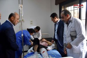وأكد وزير الصحة أن الكوادر الطبية استطاعت الإحاطة بجميع الإصابات ويتم التنسيق اللحظي بين مشافي حمص كافة، مشيراً إلى أن جميع المستلزمات متوافرة، والكوادر الطبية تقدم كل التدخلات الطبية اللازمة.