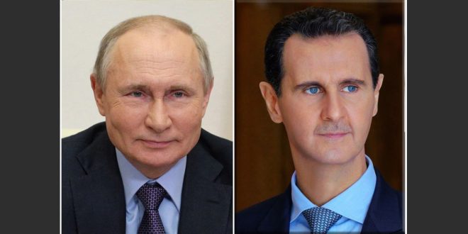 تلقى السيد الرئيس بشار الأسد برقية تعزية من الرئيس الروسي فلاديمير بوتين بشهداء الاعتداء الإرهابي الذي استهدف حفل تخريج طلاب ضباط الكلية الحربية في حمص.