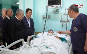 تفقد رئيس مجلس الوزراء المهندس حسين عرنوس اليوم جرحى الاعتداء الإرهابي الغاشم الذي استهدف أمس حفل تخريج طلاب الكلية الحربية في حمص، وذلك في كل من المشفى العسكري والوليد والجامعة وكرم اللوز ومشفى الزهرة بمدينة حمص.