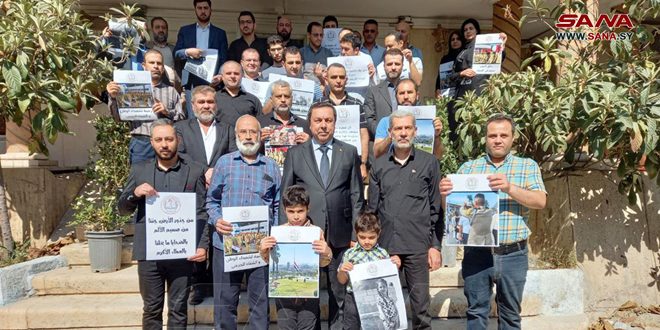 ورفع المشاركون بالوقفة التضامنية لافتات تؤكد على وحدة الشعب السوري، والوقوف خلف الجيش السوري وأبطاله.