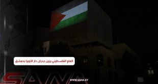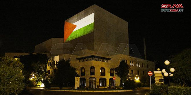 العلم الفلسطيني يزين جدران دار الأوبرا بدمشق