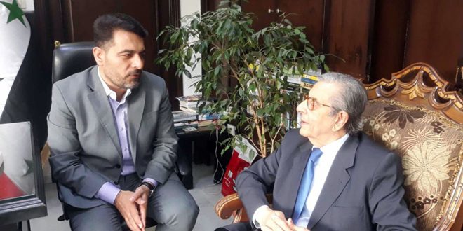 اجتمع رئيس اتحاد الكتاب العرب الدكتور محمد الحوراني وأعضاء المكتب التنفيذي بسفير الجزائر بدمشق كمال بوشامة في لقاء ثقافي تضمن مناقشة الملحمة البطولية للمقاومة الفلسطينية عبر عملية طوفان الأقصى وسبل تعزيز التعاون الثقافي لمواجهة التطبيع.