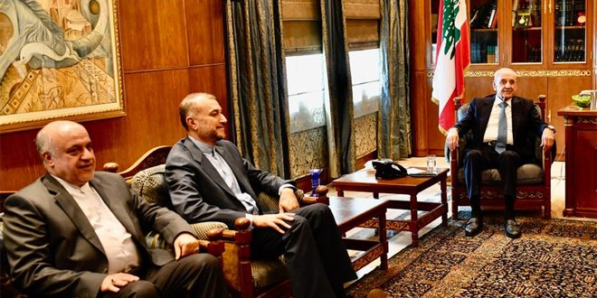 بحث رئيس مجلس النواب اللبناني نبيه بري مع وزير الخارجية الإيراني حسين أمير عبد اللهيان الأوضاع في لبنان والعدوان الإسرائيلي المتواصل على قطاع غزة.