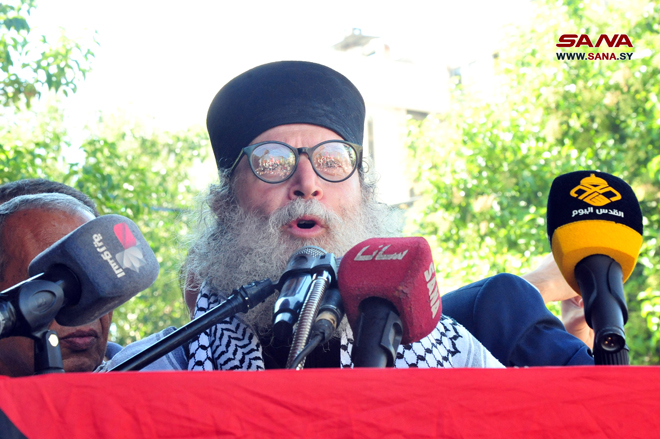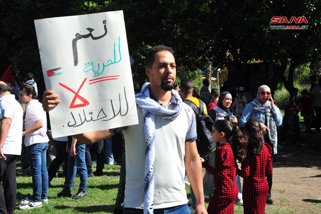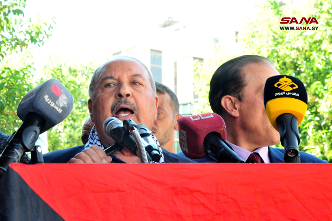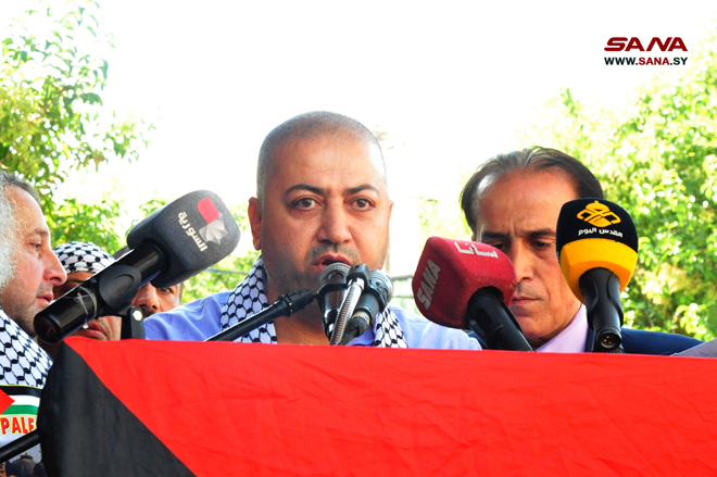 أقامت الجبهة الوطنية التقدمية وفصائل المقاومة الفلسطينية فعالية جماهيرية في ساحة عرنوس بدمشق دعماً للشعب الفلسطيني ومقاومته، وتنديداً بالجرائم التي يرتكبها الاحتلال الصهيوني بحق الأهل في قطاع غزة المحاصر.