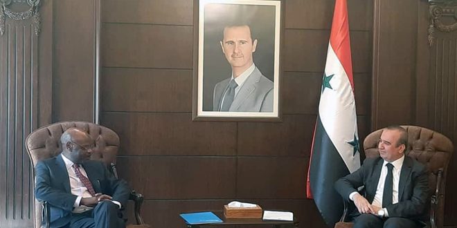 بحث المهندس حسين مخلوف وزير الإدارة المحلية والبيئة مع المنسق المقيم لأنشطة الأمم المتحدة الإنمائية والإنسانية آدم عبد المولى والوفد المرافق له احتياجات الاستجابة الإنسانية، وتعزيز أطر التعاون بين الجانب الحكومي واللجنة العليا للإغاثة ومنظمات الأمم المتحدة الإنمائية والإنسانية العاملة في سورية.