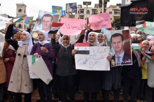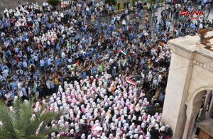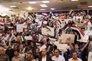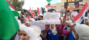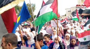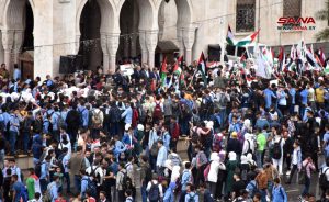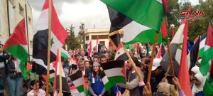 ففي دمشق نفذ فرع اتحاد الشبيبة وقفةً تضامنيةً مع عملية (طوفان الأقصى) ودعماً للمقاومة الفلسطينية وتنديداً بجرائم الاحتلال الصهيوني واعتداءاته الوحشية على أهلنا في قطاع غزة.