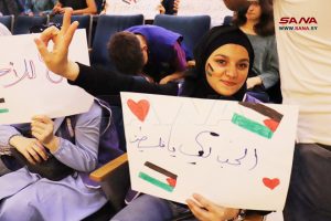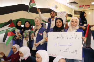 بدوره بين سومر الظاهر رئيس اتحاد شبيبة الثورة أن شباب سورية جزء أساسي من المشروع الوطني المقاوم، وأن إيمانهم راسخ في دعم أبناء الشعب الفلسطيني لتحقيق النصر والعودة.