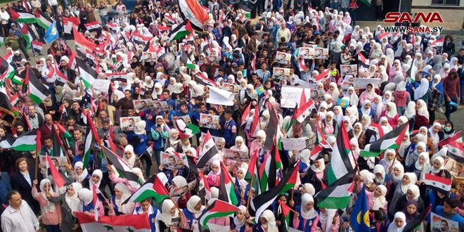 وأكد عدد من المشاركين أن الوقفات والفعاليات التضامنية في سورية تعكس دعم السوريين للشعب الفلسطيني والمقاومة بوجه جرائم العدو ومجازره وقتله الأطفال والنساء.