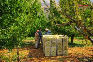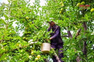 يعد محصول التفاح من المحاصيل الاستراتيجية في محافظة ريف دمشق، حيث يصل إجمالي المساحات المزروعة إلى أكثر من 12354 هكتاراً بعدد أشجار 4.5 ملايين شجرة، منها 3 ملايين مثمرة.