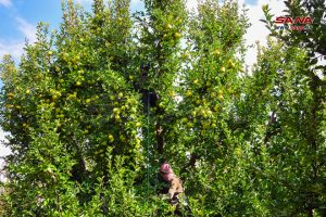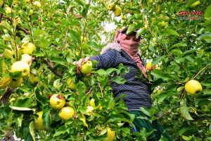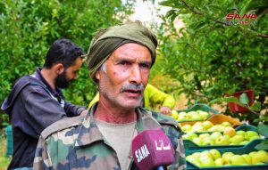 علي خلف أبو الهف مزارع منذ نحو أربعين عاماً كبر مع أشجاره التي يتجاوز عمر الواحدة 35 عاماً قال: إن “شجرة التفاح يوليها كل الاهتمام والرعاية كما لو كانت ولداً من أولاده، كونها الركيزة الأساسية لمعيشته”، معتبراً أن هذا الموسم من أفضل المواسم، فيما بين محمد الطواح أن القطاف بدأ في الـ 20 من أيلول الماضي ويستمر حتى الـ 15 من تشرين الأول.