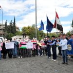 وفي القنيطرة، عبر المشاركون بالوقفة في ساحة مبنى مديرية الثقافة بمدينة البعث عن استنكارهم للاعتداءات الوحشية على المدنيين العزل في قطاع غزة.
