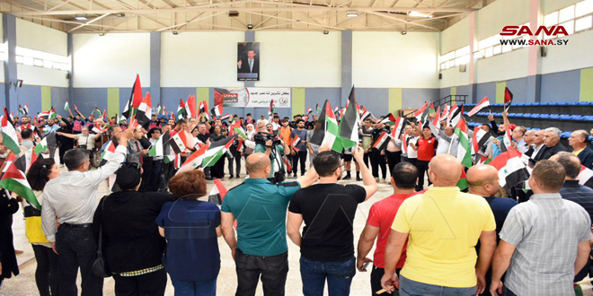 وأشار رئيس اللجنة التنفيذية للاتحاد الرياضي بدمشق مهند طه إلى أن الشعب الفلسطيني قدم الكثير من الشهداء بوجه هذا العدوان، وسطر أفضل ملاحم البطولة وقهر هذا الكيان الغاشم.