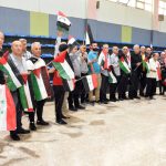 دعماً للمقاومة الفلسطينية وتنديداً باعتداءات الاحتلال الصهيوني وجرائمه بحق الشعب الفلسطيني في قطاع غزة، نظم الاتحاد الرياضي العام وفروعه بالمحافظات اليوم وقفة تضامنية بمشاركة كوادر الرياضة السورية بمختلف الألعاب الرياضية.