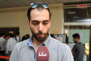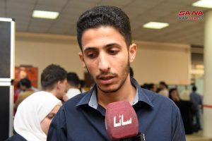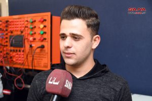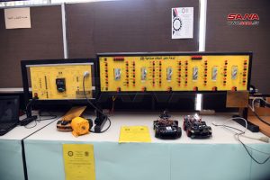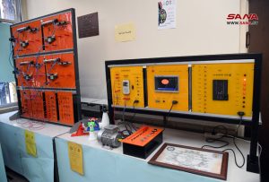الطالب محمد الخطيب أشار إلى أنه يشارك وزملاؤه بمشروع عبارة عن مخبر للتحكم الكهربائي يستخدم في تدريب الطلاب على المدارات والتجهيزات الكهربائية واختبارها بطريقة تحاكي ما يجري على أرض الواقع وكيفية كشف الأعطال والتحكم عن بعد عبر المحرك الموجود.