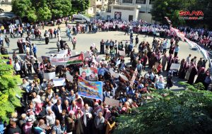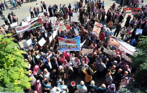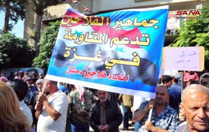 واستنكر رؤساء فروع النقابة في دمشق وإدلب والرقة ما يتعرض له الشعب الفلسطيني في قطاع غزة من استهداف وقتل متعمد من قبل العدو الصهيوني الذي يسعى لطمس الحقيقة والواقع، مستذكرين جرائم المجموعات الإرهابية المتناغمة مع جرائم الاحتلال التي ارتكبت بحق الشعب السوري، ومؤكدين في الوقت نفسه أنه مهما بالغ الكيان الصهيوني في إجرامه ستبقى قضية فلسطين هي البوصلة لكل عربي شريف.