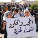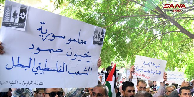 وأوضح رئيس المكتب الفرعي لنقابة المعلمين بالرقة يوسف شاهين أن المعلمين احتشدوا اليوم تضامناً مع المقاومة الفلسطينية التي حققت الانتصار، وحطمت أسطورة العدو الذي لا يقهر، مطالباً بإدانة مجازره الوحشية بحق المدنيين الأبرياء التي تشكل انتهاكاً صارخاً لكل الأعراف الإنسانية والقوانين الدولية.