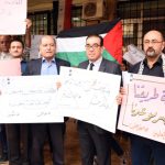 وأكد رئيس فرع النقابة فيصل الأحمد أن الشعب الفلسطيني المتمسك بأرضه وحقوقه سينتصر على آلة الشر الصهيونية المدعومة من قبل رعاة الإرهاب والاستعمار ، وكل هذه الجرائم لن تمنع الشعب الفلسطيني من مواصلة النضال والكفاح حتى استعادة كل حقوقه.