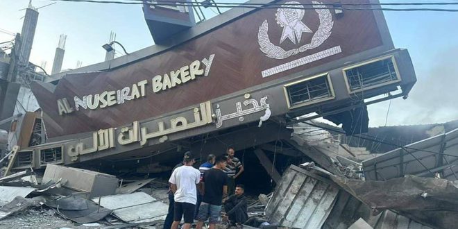 وكان الاحتلال قصف أمس مخبز البنا في مخيم النصيرات وسط قطاع غزة، والذي يعد من أكبر المخابز في المنطقة، ما أدى لاستشهاد وجرح عدد من الفلسطينيين من العاملين فيه، وممن كانوا ينتظرون شراء الخبز على أبوابه.