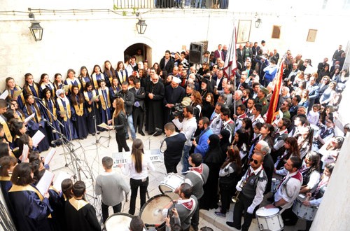 2015-04-25 وفد دعاة السلام المشارك بالمؤتمر الدولي "سورية إلى إعادة البناء" يزور بلدتي معلولا وصيدنايا 2015-04-25mohamad