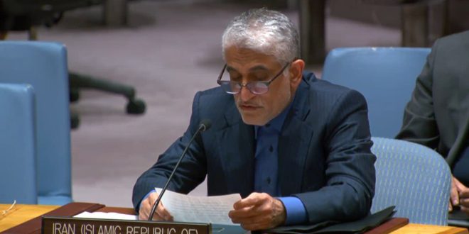 طالب السفير والمندوب الدائم لإيران لدى منظمة الأمم المتحدة أمير سعيد إيرواني اليوم مجلس الأمن باتخاذ إجراءات فورية لوقف العدوان الإسرائيلي على قطاع غزة، مؤكداً أن ما ترتكبه قوات الاحتلال بحق أهالي غزة يعد مثالاً للإبادة الجماعية وجريمة حرب.