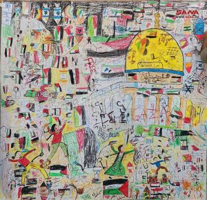 رسوم الأطفال التي جاءت مفعمة بالألوان عبرت عن بعض ما يشعر به هؤلاء الأطفال، فالطفلة ميرال الهترة 11 ربيعاً، رسمت علم سورية والتي ترى فيه رمزاً للأمان، ولونت قبة المسجد الأقصى إلى جانب علم فلسطين مع عبارات تحمل دعوات بالسلام لفلسطين وأطفالها، أما الطفلة سارة 3 سنوات فلونت علم فلسطين مع إشارة النصر.