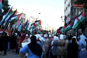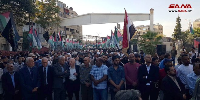 فعاليات حزبية وأهلية واجتماعية ودينية سورية وفلسطينية شاركت في الوقفة، وأكدت التضامن المطلق مع أهل قطاع غزة، معتبرة أن إرادة المقاومة والصمود أقوى من كل الضغوط، وأن الصمت الدولي حيال المجازر الوحشية التي يرتكبها كيان الاحتلال الصهيوني في قطاع غزة المحاصر وصمة عار.