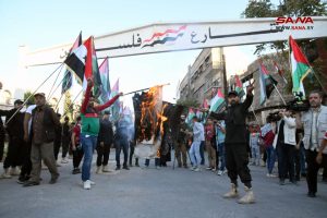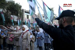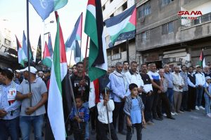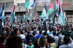 أقامت المقاومة الوطنية الفلسطينية وقفة تضامنية في مخيم اليرموك بدمشق، دعماً للشعب الفلسطيني ومقاومته، ونصرة لأهالي قطاع غزة المحاصر، وتنديداً بالجرائم التي يرتكبها الاحتلال الصهيوني بحقهم.