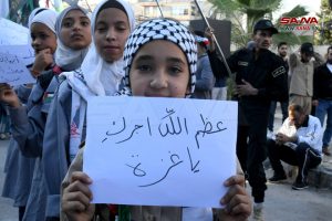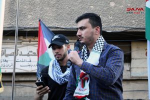 من جهته عضو مجلس الشعب رأفت بكار أشار إلى أن ما يقوم به الاحتلال الإسرائيلي من قصف وقتل للمدنيين في غزة جريمة حرب وإبادة جماعية جبانة تؤكد حقد هذا الكيان وفشله أمام صمود ونضال الشعب الفلسطيني ومقاومته التي حققت أعظم الإنجازات على الأرض، داعياً الأمم المتحدة والمجتمع الدولي إلى الضغط على كيان الاحتلال لوقف مجازره بحق الفلسطينيين الآمنين في غزة، ومنع تعرضهم للتهجير القسري والإسراع بإدخال المساعدات الإغاثية والإنسانية لهم.